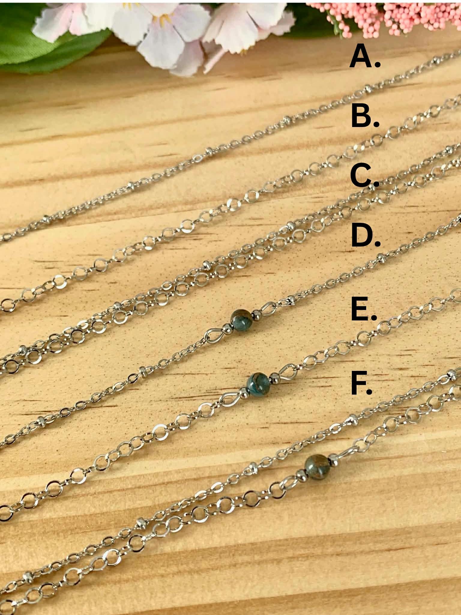 Our famous ankle bracelets have been our customers favorite for many years. We only use the best Stainless steel and we pick our gemstones carefully making our pieces unique and durable.