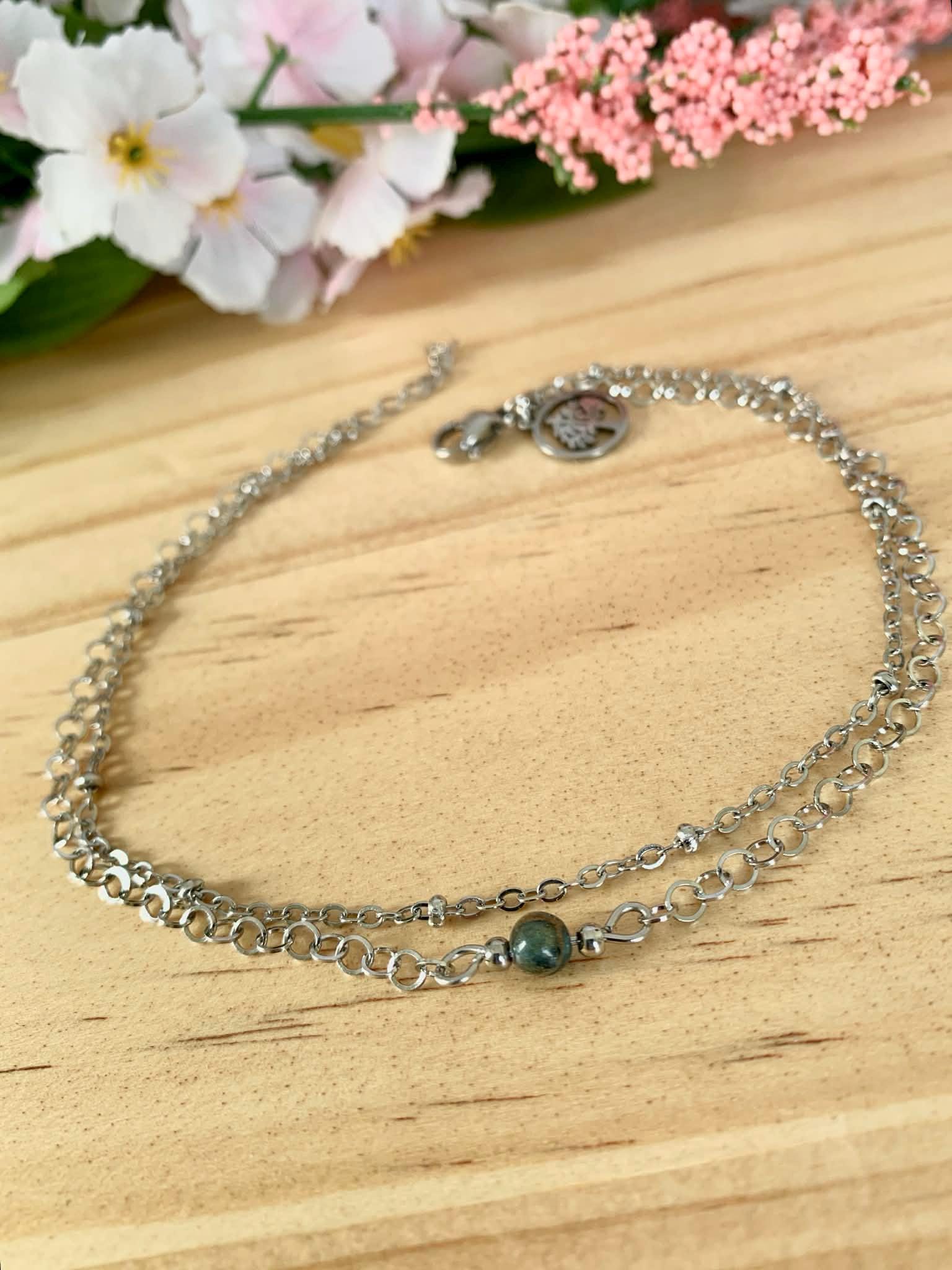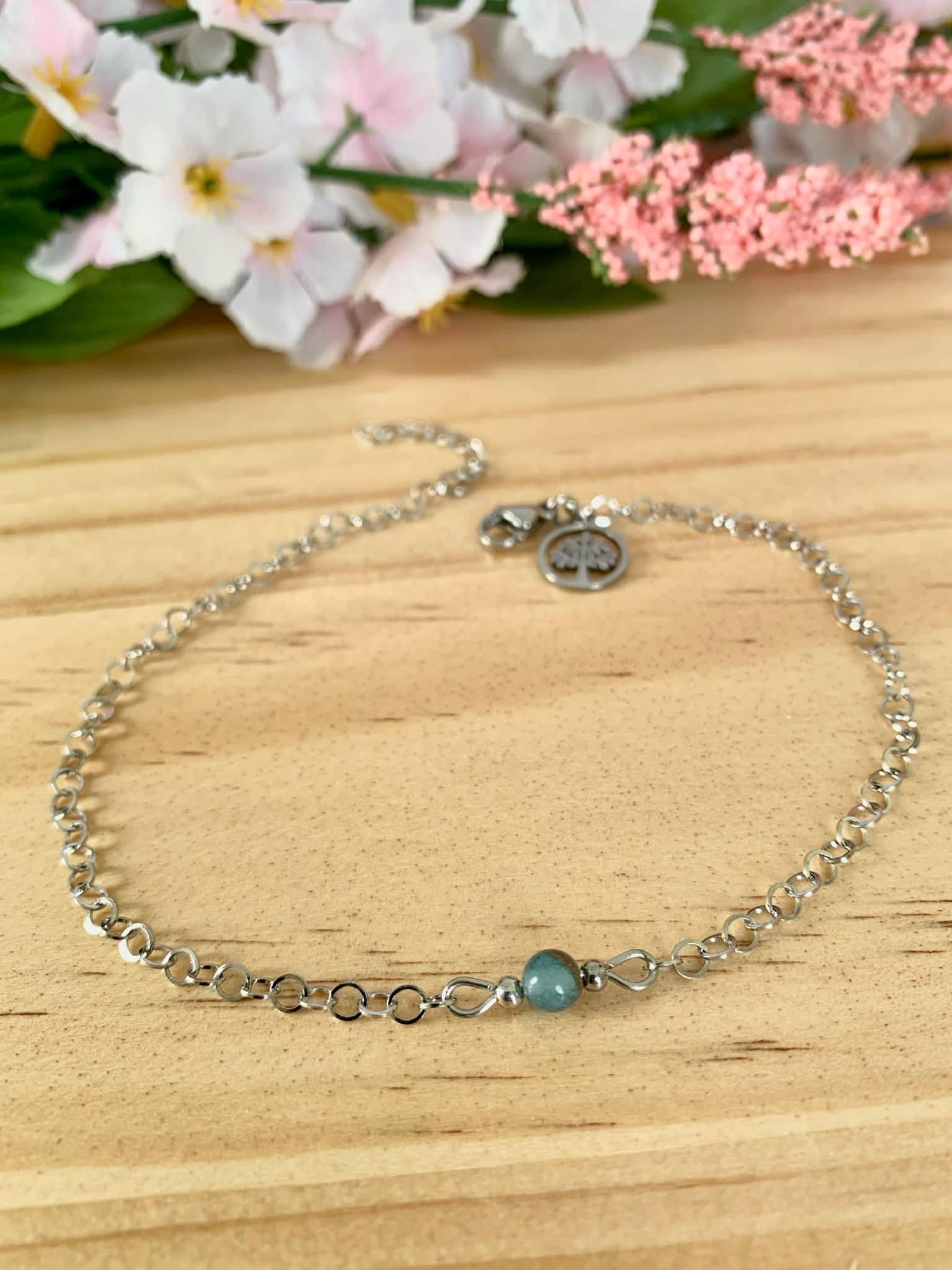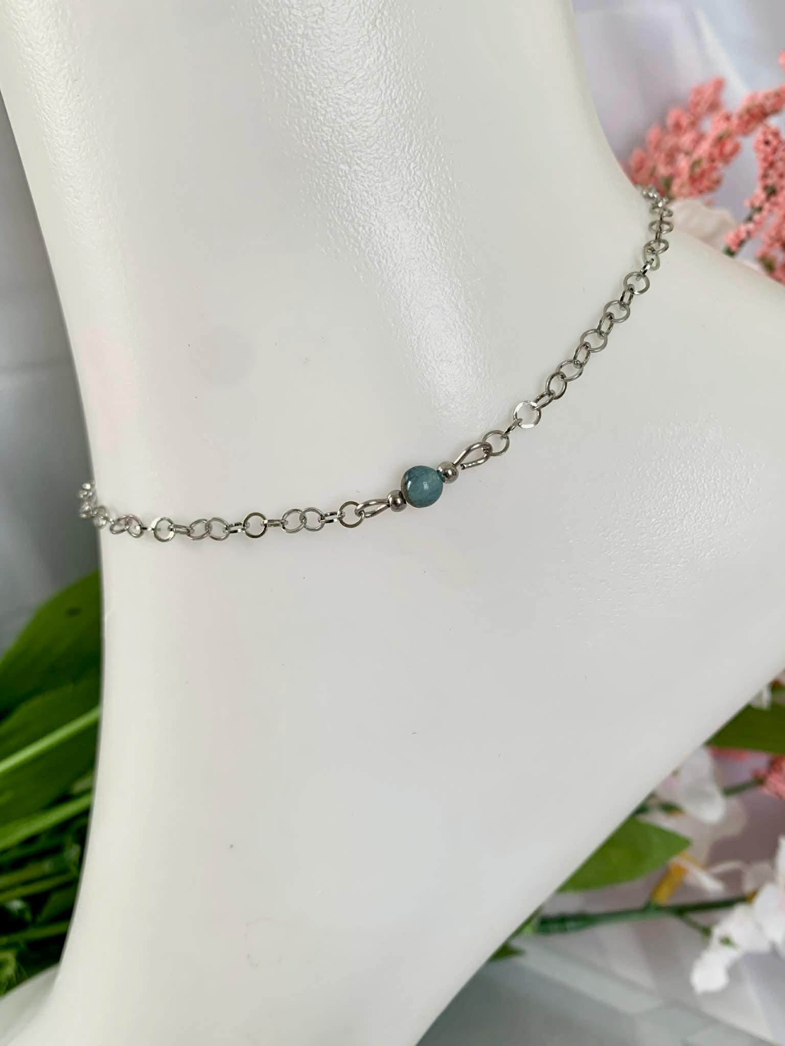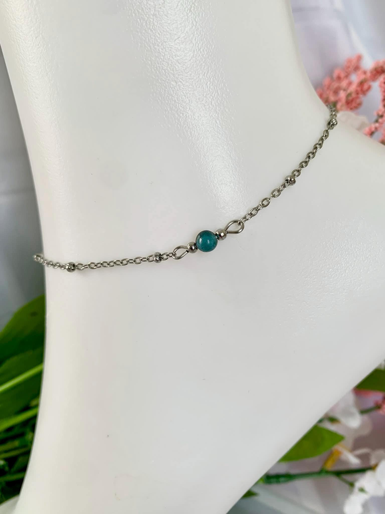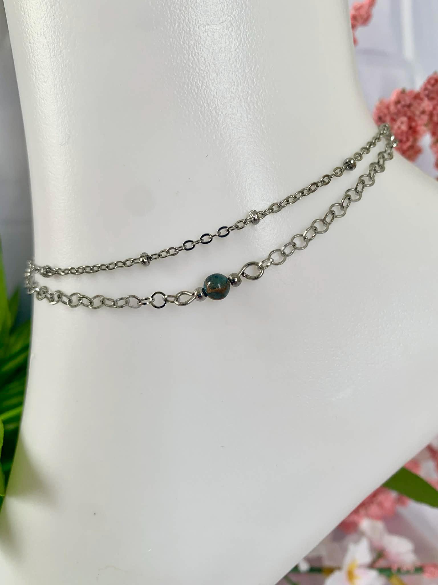 F- double layered ankle bracelet adorned with a Lake Blue Cloisonné stone.