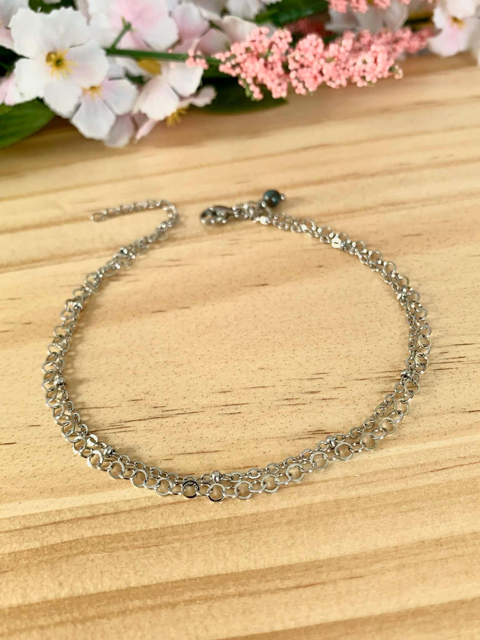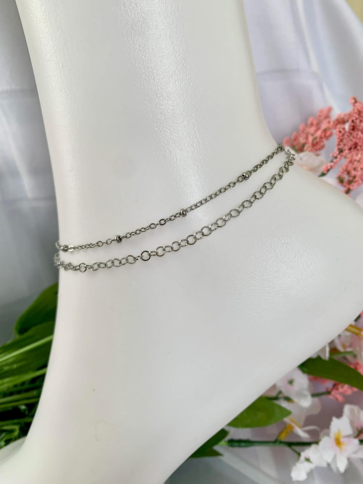 C- double layered ankle bracelet satellite chain and cable curb chain without gemstone;